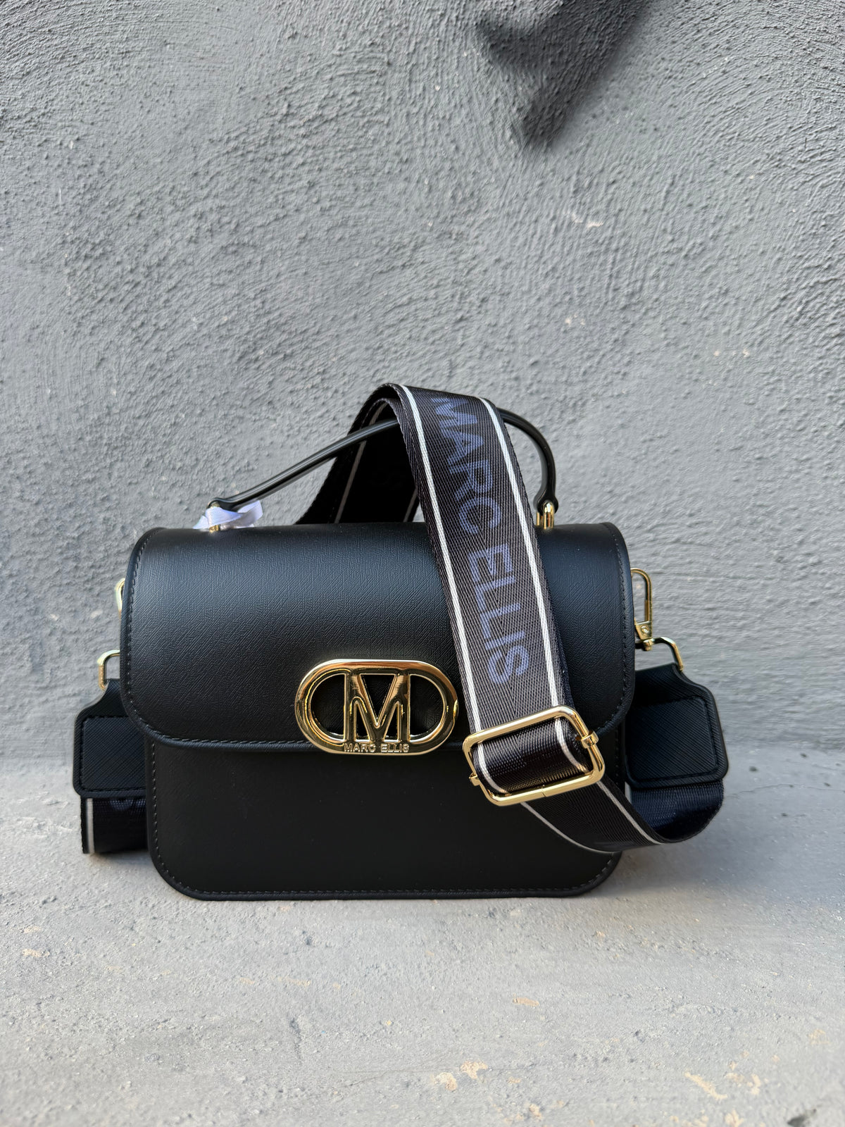 Borsa a mano con logo in rilievo in gold.