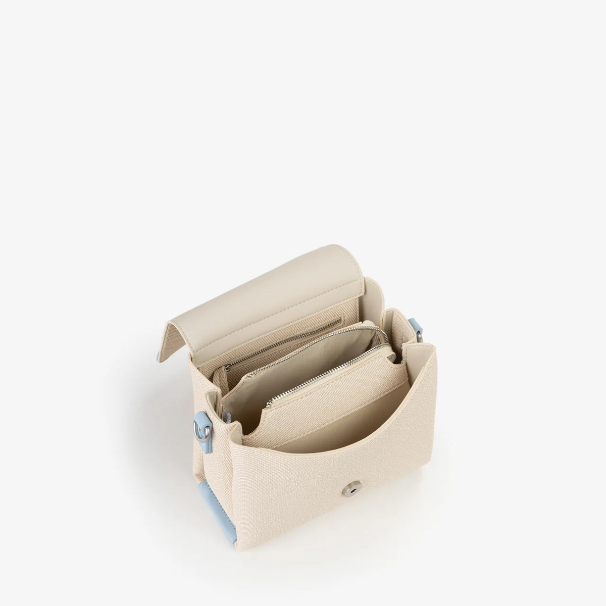borsa in fake canvas con dettagli in nappa a constrasto