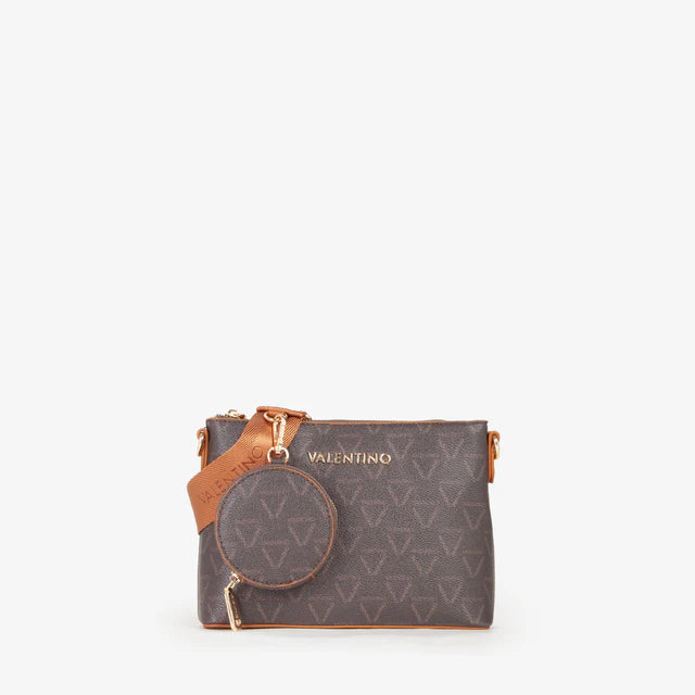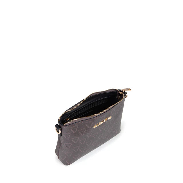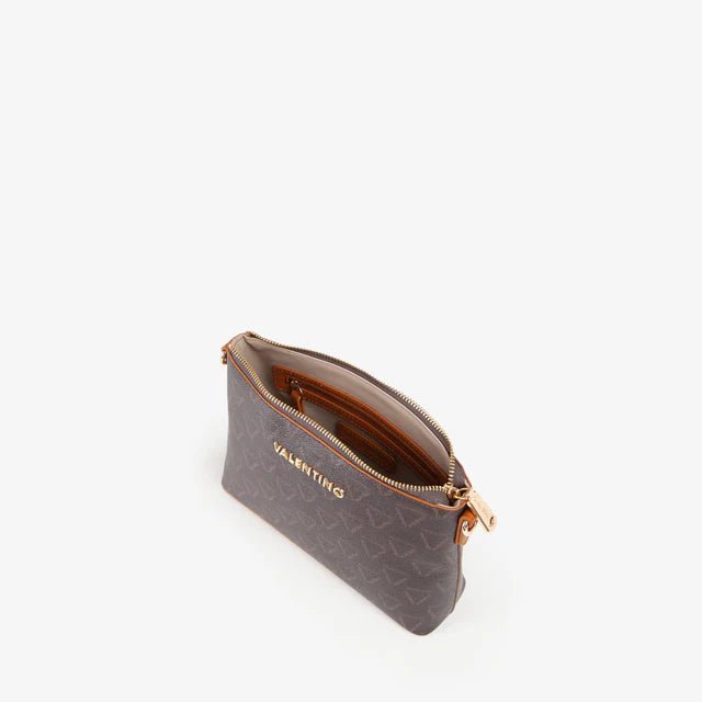 pochette con logo all-over iconico del brand, con tracolla in nastro logata e mini accessorio staccabile in tono alla borsa.