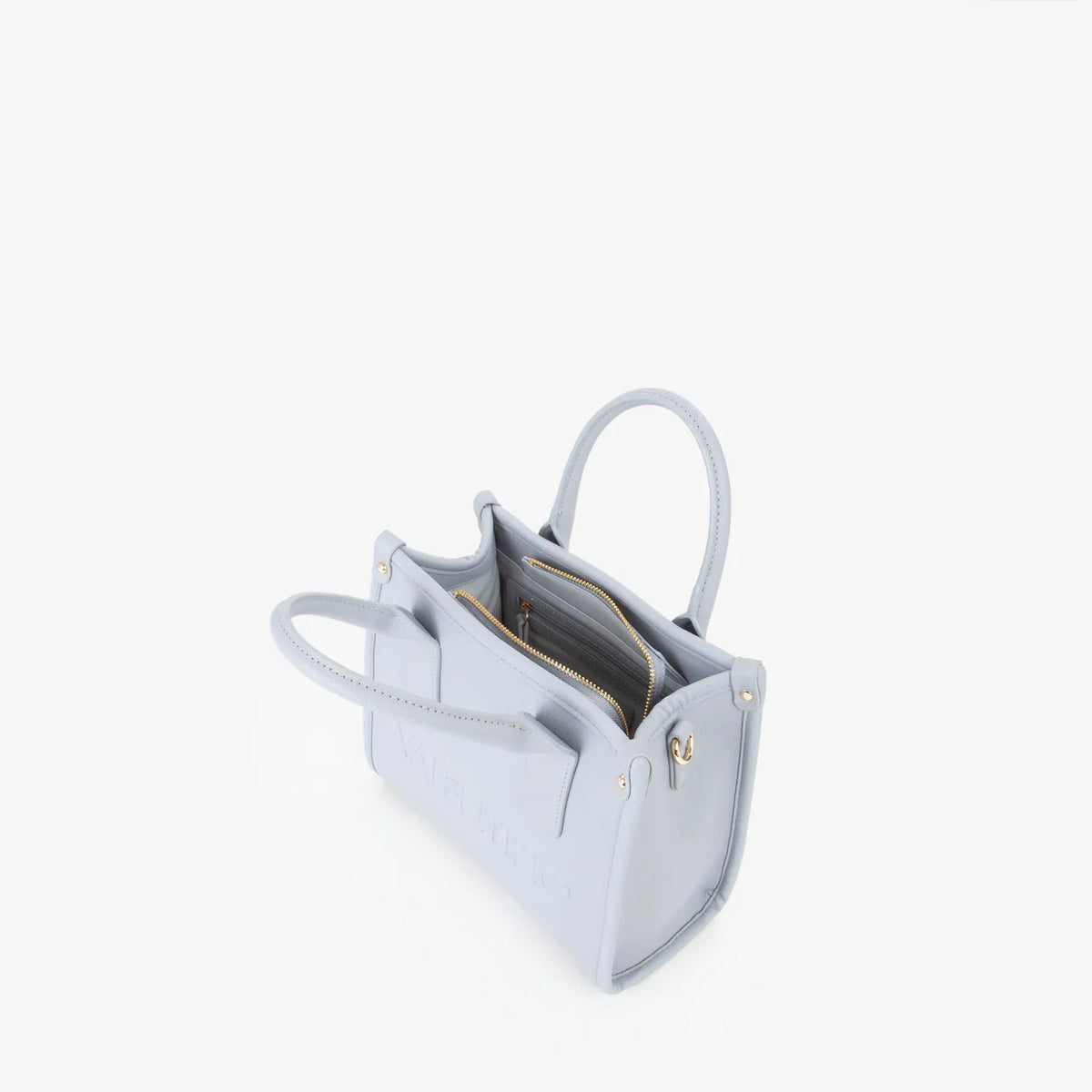 Shopper in grana con logo marchiato a fuoco. Dispone di una tracolla in nastro personalizzata e staccabile.