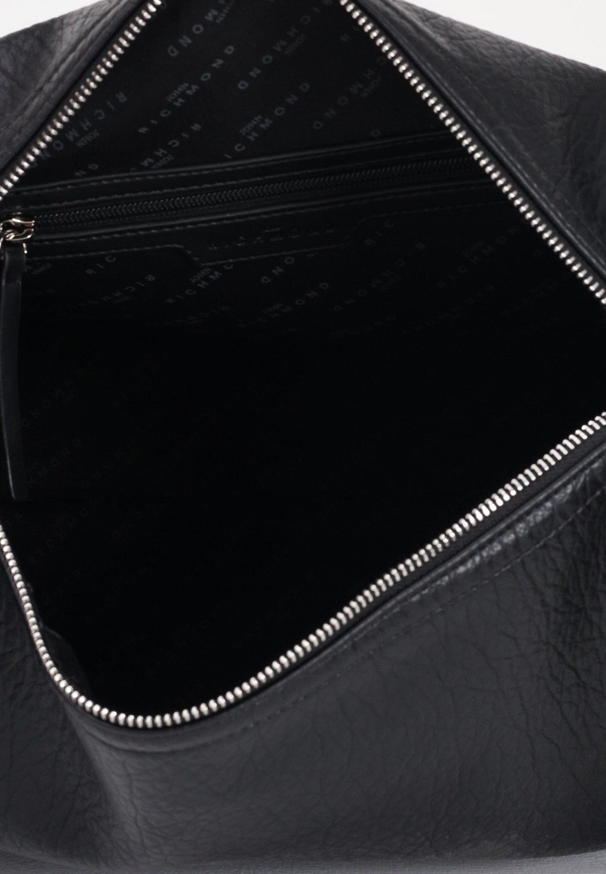 RICHMOND Shopper nera da donna realizzata in ecopelle martellata, caratterizzata da una texture morbida e resistente che le dona un look contemporaneo e di carattere. La forma ampia e capiente la rende estremamente funzionale per l'uso quotidiano, perfetta per contenere tutto l'indispensabile con praticità. Il design è arricchito da una catena in metallo intrecciata con pelle, che funge sia da dettaglio decorativo sia da manico corto per portarla a mano. Inoltre, è dotata di una tracolla regolabile che consente di indossarla anche a spalla o crossbody, garantendo massima versatilità. La chiusura è con zip superiore, sicura e funzionale, mentre l'interno è spazioso e organizzato con tasche utili per riporre gli oggetti personali. Un accessorio dallo stile urban-chic, perfetto per accompagnare look casual o più eleganti con un tocco grintoso firmato Richmond. Dimensioni: A 26cm; L 45cm; P 21cm. Stagione autunno inverno.